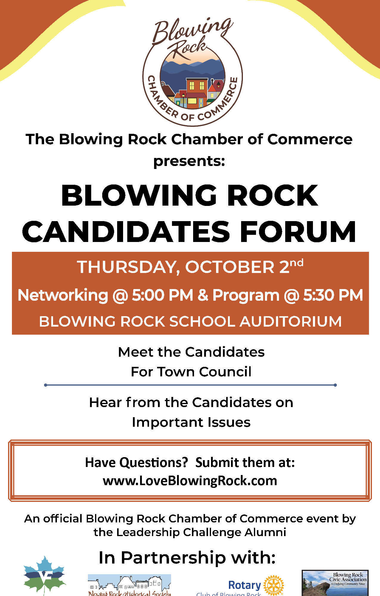 This moderated event offers an open, informative discussion to help voters make confident and informed choices. Meet the Blowing Rock Town Council candidates and hear from them on important issues!