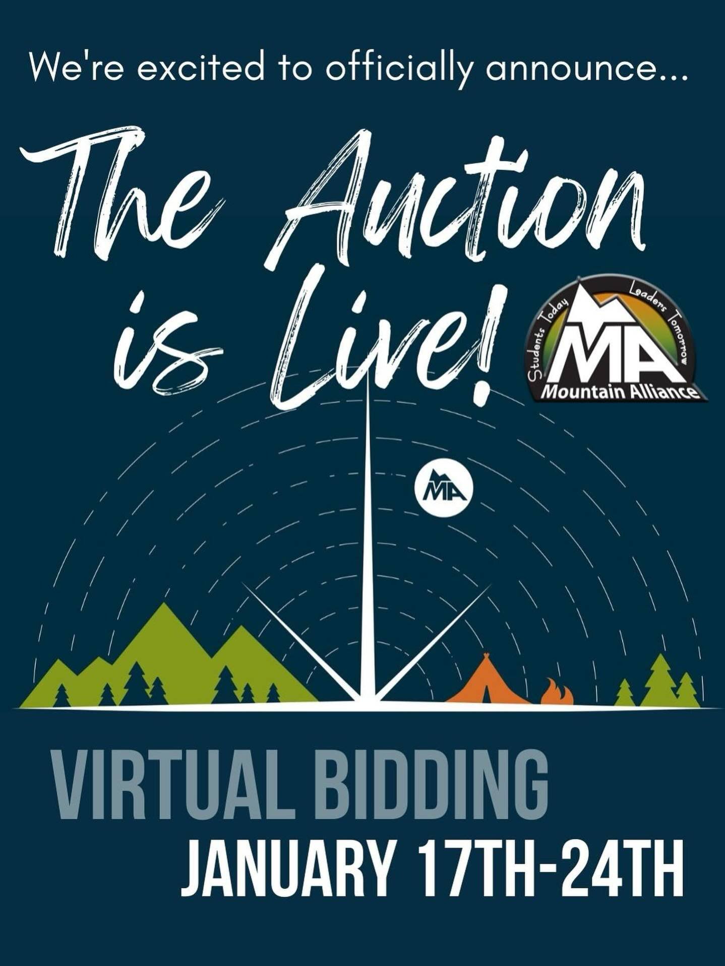 The annual Mountain Alliance Silent Auction is live for online bidding through Saturday 01/24/20256 it at 4pm. In-person viewing is Saturday, January 24th from 10am – 4pm, at the American Legion in Blowing Rock. All bidding will be held online.