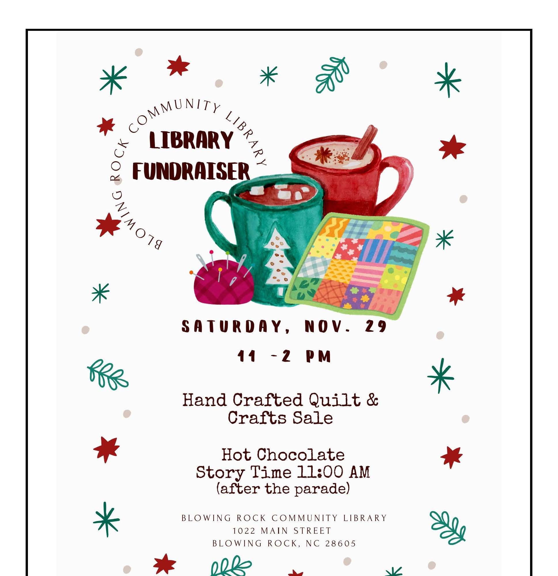 Blowing Rock Community Library will be open for a Hot Chocolate and a Hand-Crafted Quilts & Crafts Sale from 11:00 am to 2:00 pm. on November 29. Story Time for children will start following the parade. Mail a letter to Santa in Santa's Mailbox!